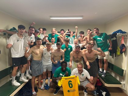 Im Zuge des Torjubels kam es noch zu einer Tätlichkeit eines Eggenburger Spielers, dessen Mannschaft wenig später das Spiel folgerichtig nur zu zehnt beendete. Das sollte dem Jubel aber keinen Abbruch tun, man hatte die erste Hürde in einer schweren Saison souverän gemeistert.